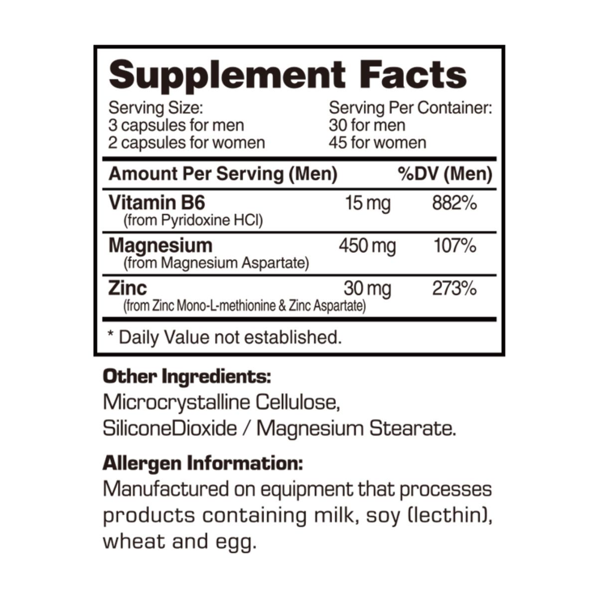 • ZMB 膳食補充劑膠囊(ZMA)含有鋅、鎂和維生素 B6,對人體有多種有益作用。