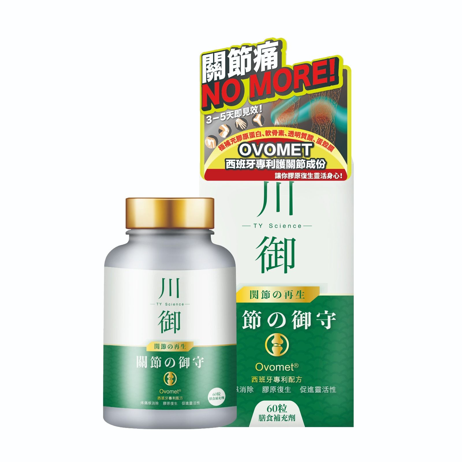 川御關節の御守是一款科技結合的保健品,專為改善關節健康而設。主要成份西班牙專利成份Ovomet®蛋殼膜,由天然提取的成分,含有膠原蛋白、軟骨素和透明質酸等關節健康必要的營養元素。科研報告減輕關節疼痛幅度大增10倍、改善關節功能,並緩解關節炎症狀。不用長期服用,只需3-5天即可見效,用量低,成果大。Ovomet® 除了提供關節所需的營養,還具有抗炎和抗氧化的特性。作為一種全面關節健康產品,關節の御守令你維護關節靈活性、舒適性和軟組織健康。