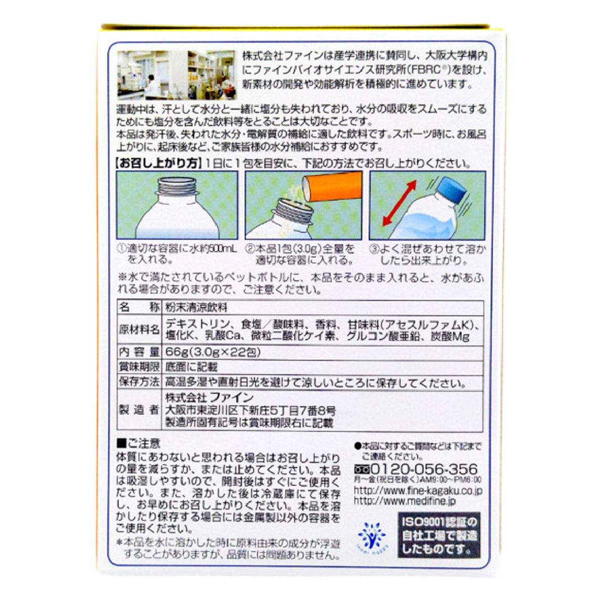 難消化性糊精(法國製造)、麥芽糖醇、食鹽/檸檬酸、維他命C、甜味劑(乙酰磺胺酸鉀)、氯化鉀、乳酸鈣、微細二氧化矽、葡萄糖酸鋅、檸檬酸鈣、香料、碳酸鎂
