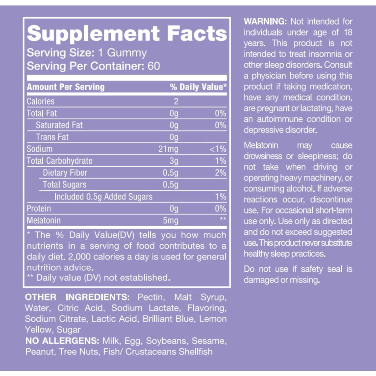 • 褪黑素可能會引起困倦或嗜睡,請勿在駕駛或操作重型機械或飲酒時服用。