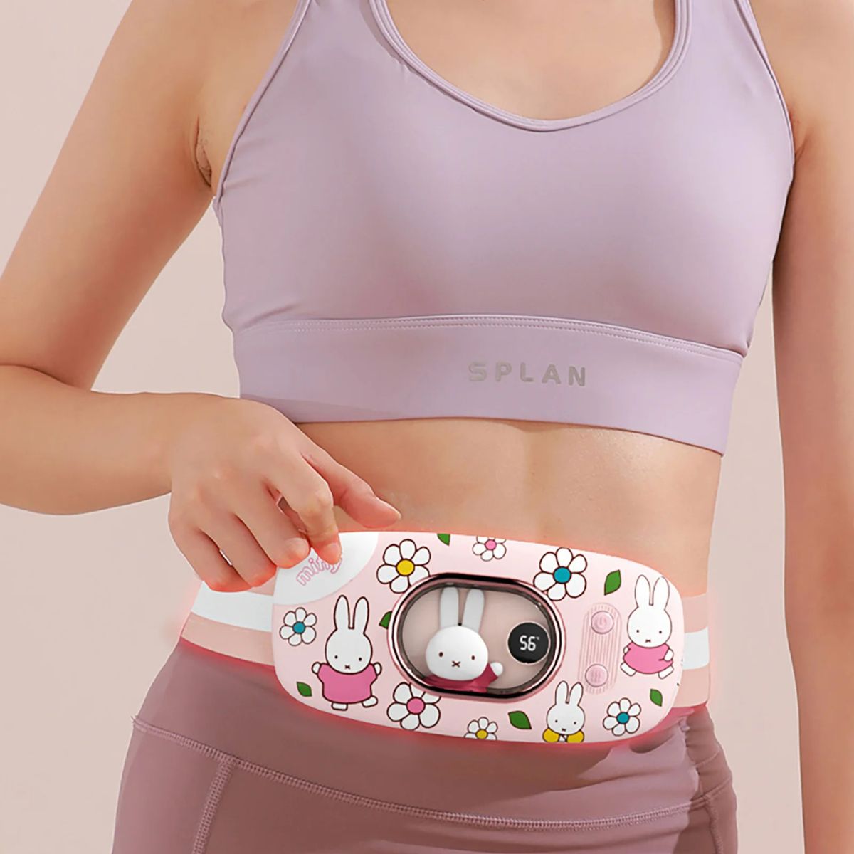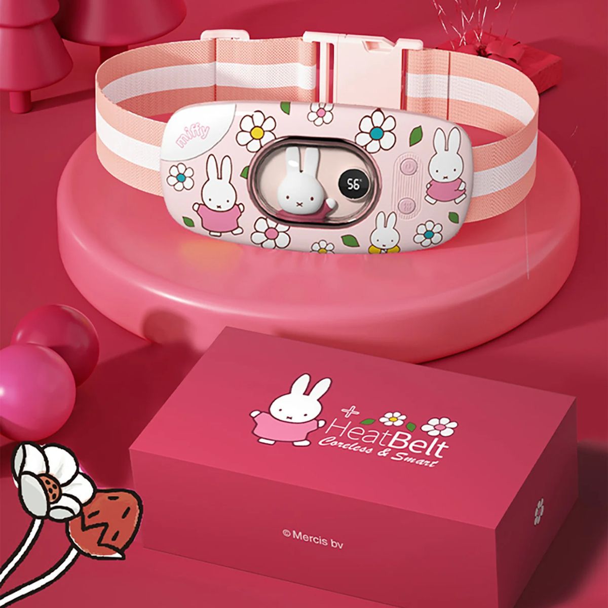 Miffy 智慧型便攜式無線月經加熱墊,電動腰帶裝置,5S 快速加熱墊,具有 3 種熱度和 4 種按摩模式,適合女性和女孩的背部或腹部加熱墊。送給女士和女孩的精美禮物。可愛的 Miffy 外觀設計具有小月光功能。