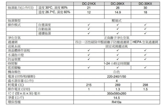 - 廠方標準抽濕能力︰21公升/日