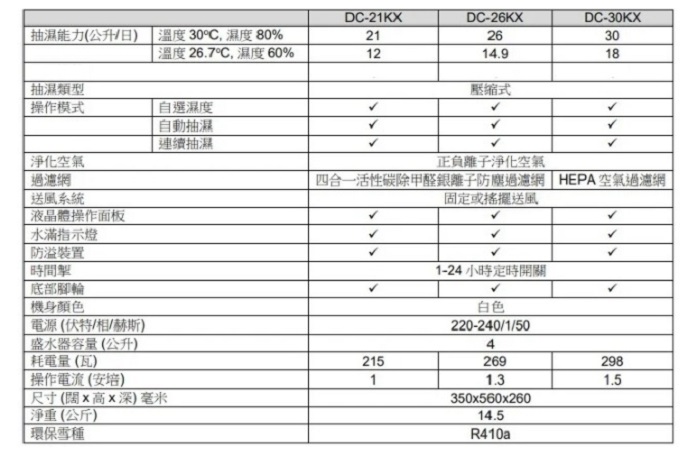 - 3種操作模式 (自動抽濕、自選濕度、連續抽濕)