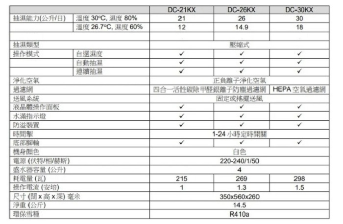- 廠方標準抽濕能力︰30公升/日