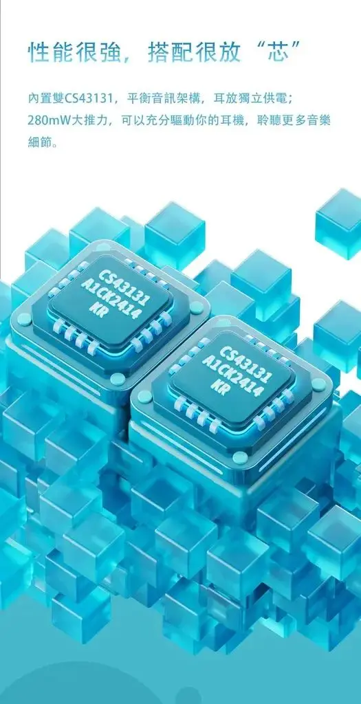 內置雙 CS43131,平衡音訊架構,耳放獨立供電;280mW 大推力,可以充分驅動你的耳機,聆聽更多音樂細節。