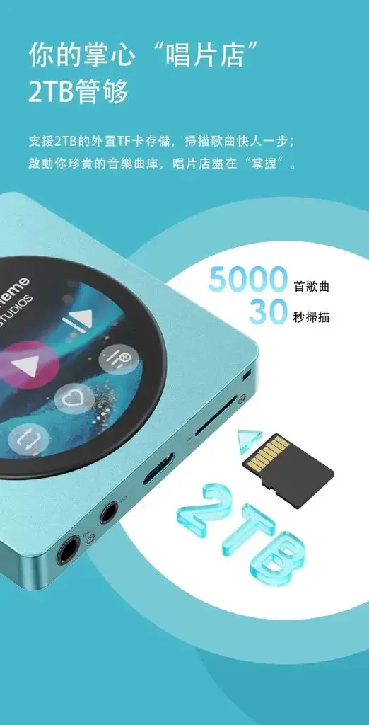 支援 2TB 的外置TF卡存儲,掃描歌曲快人一步; 啟動你珍貴的音樂曲庫,唱片店盡在 “掌握”。