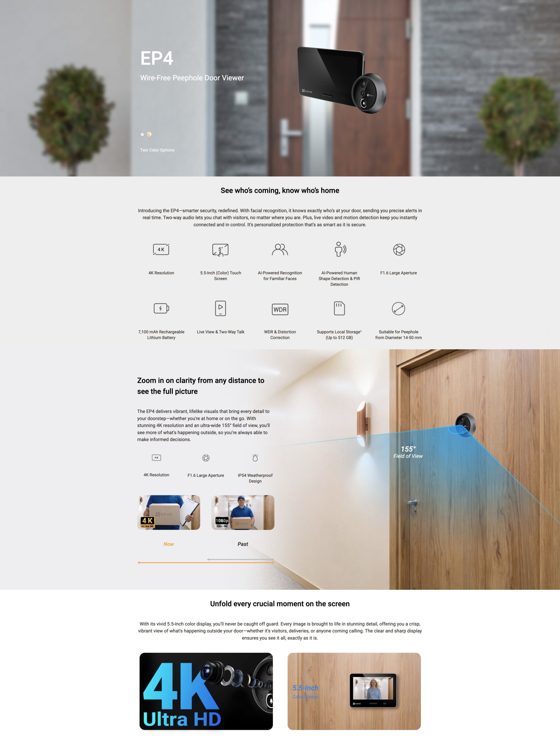 EZVIZ - EP4 4K 觸控面板智能貓眼攝像頭+門鈴