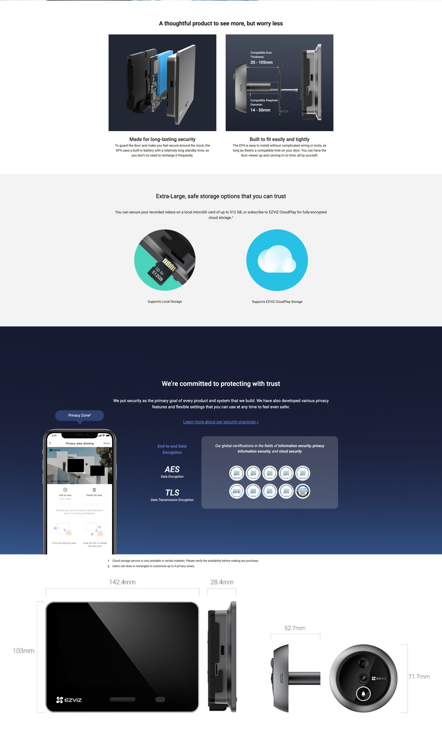 - 儲存:microSD 卡槽,最大支援 512 GB 或 EZVIZ CloudPlay 雲端存儲