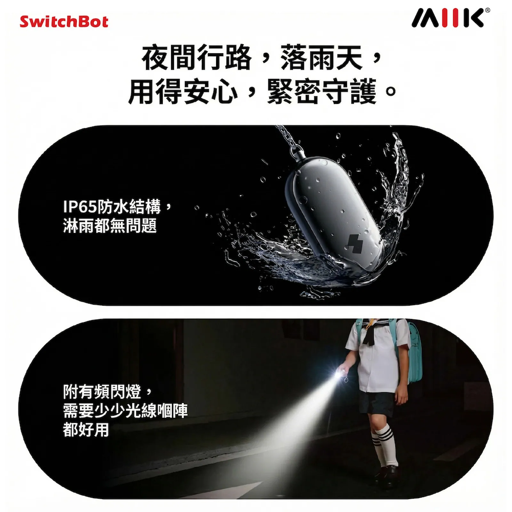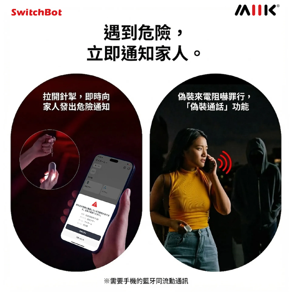 - 130分貝緊急警報:拔出插針觸發高聲警報 + 閃光燈 + 自動通知緊急聯絡人