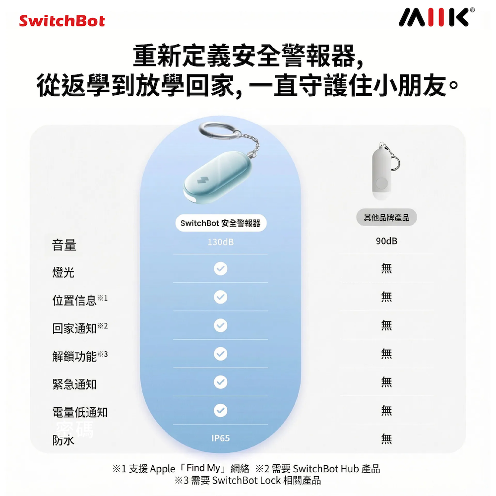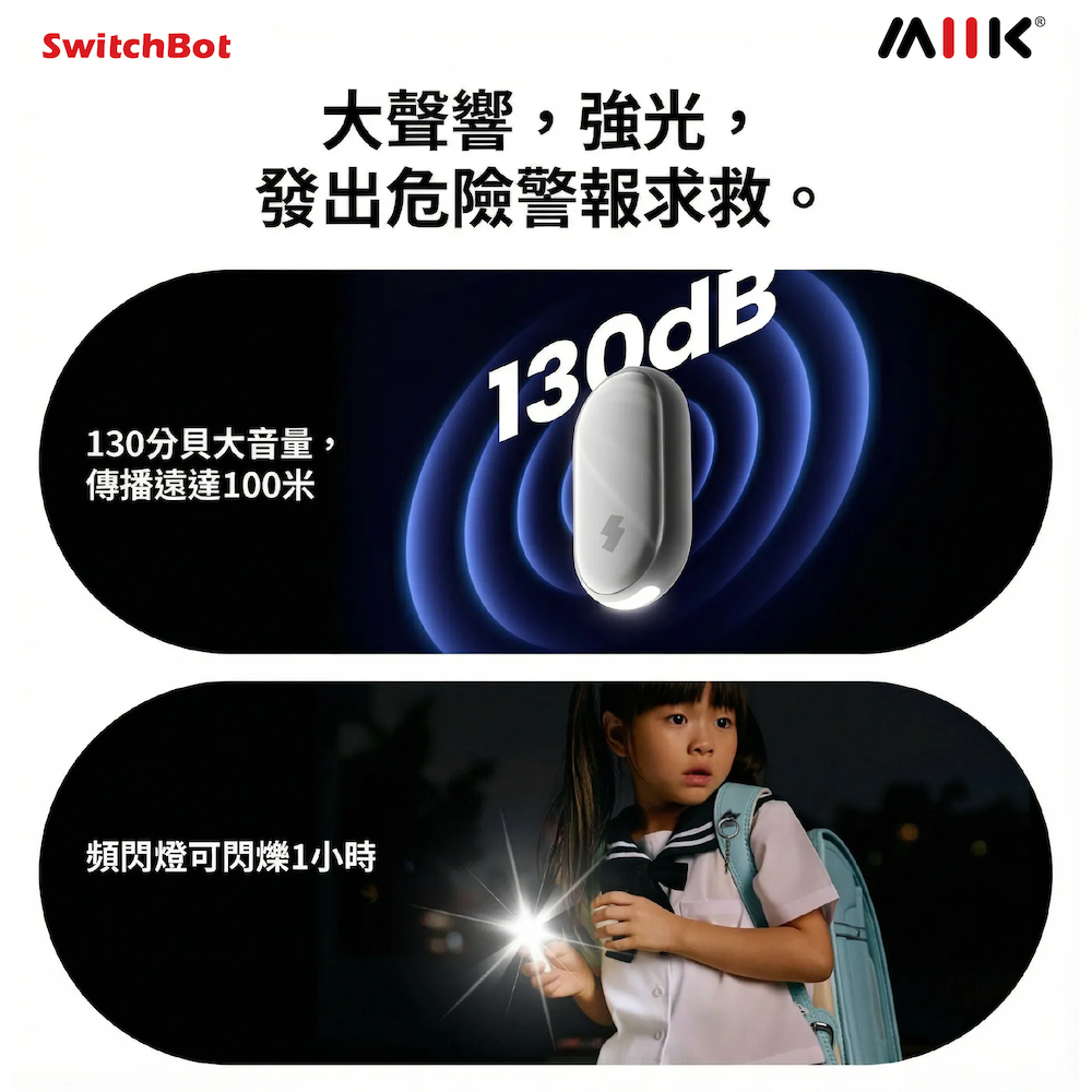SwitchBot - Safety Alarm 安全警報器內建高亮度頻閃燈和130分貝超響警報 Works With Apple Find My
