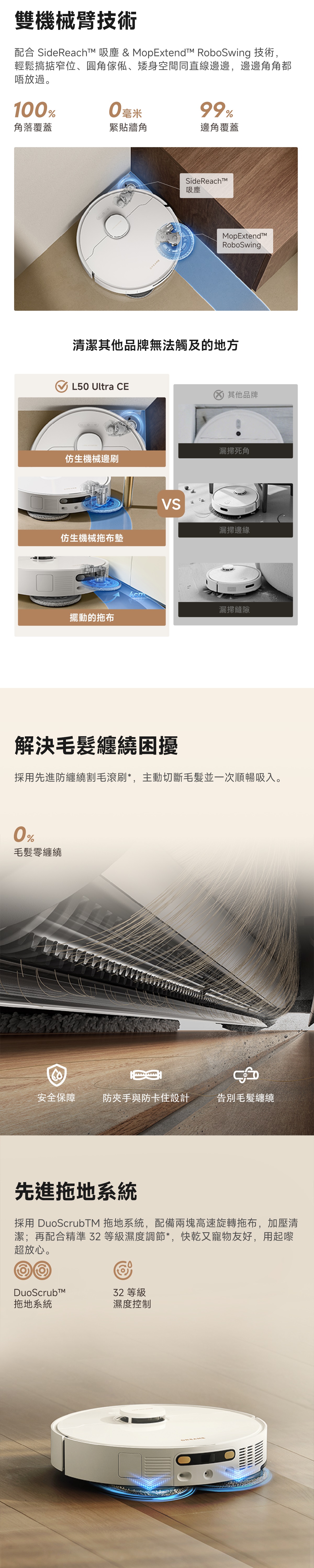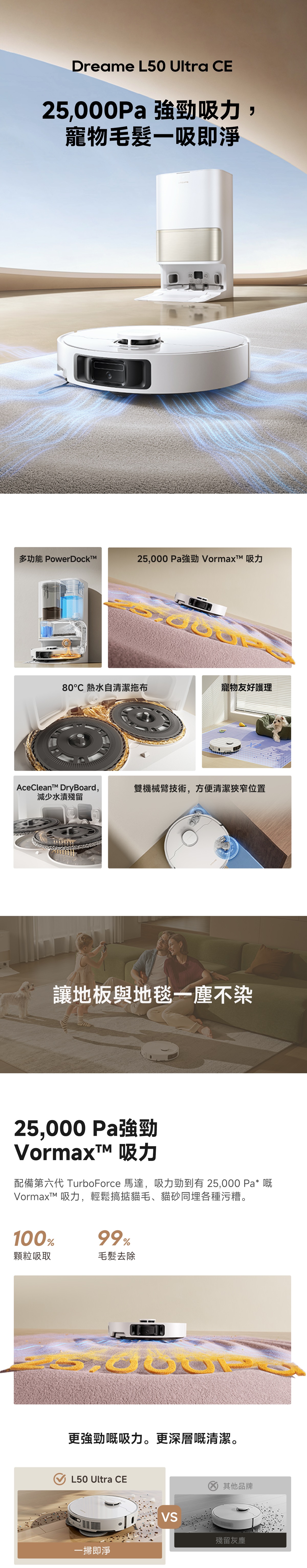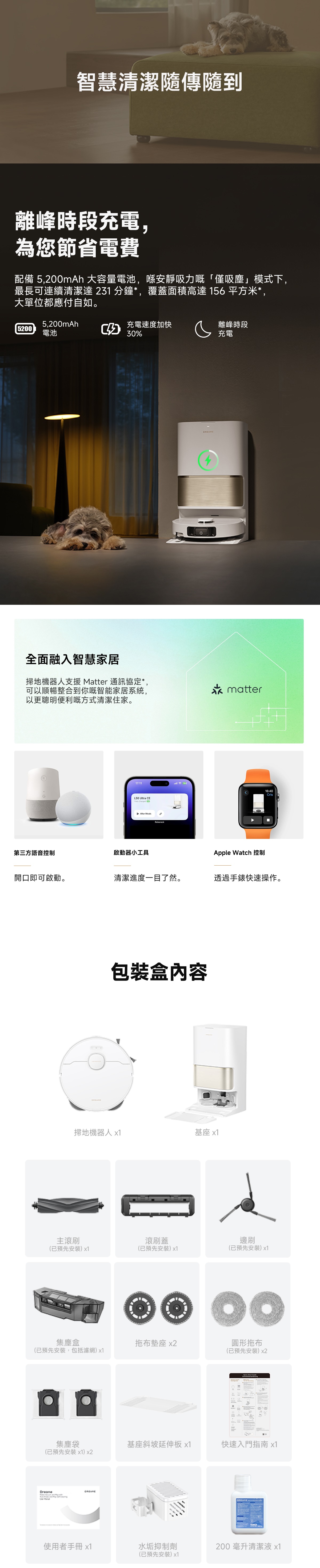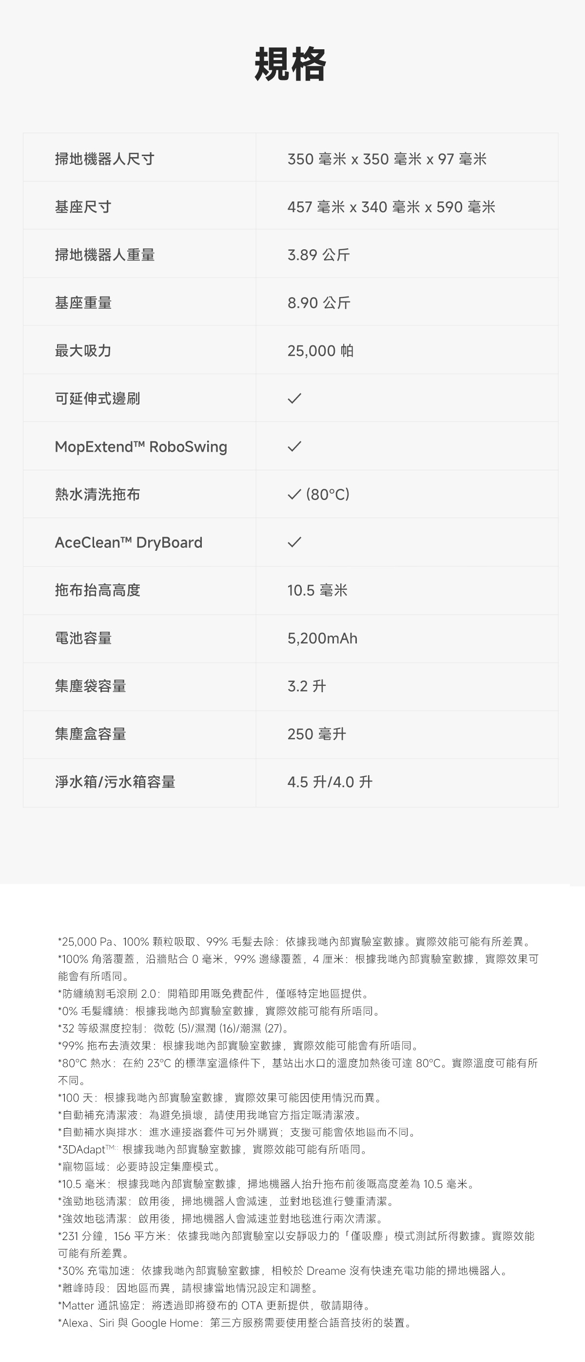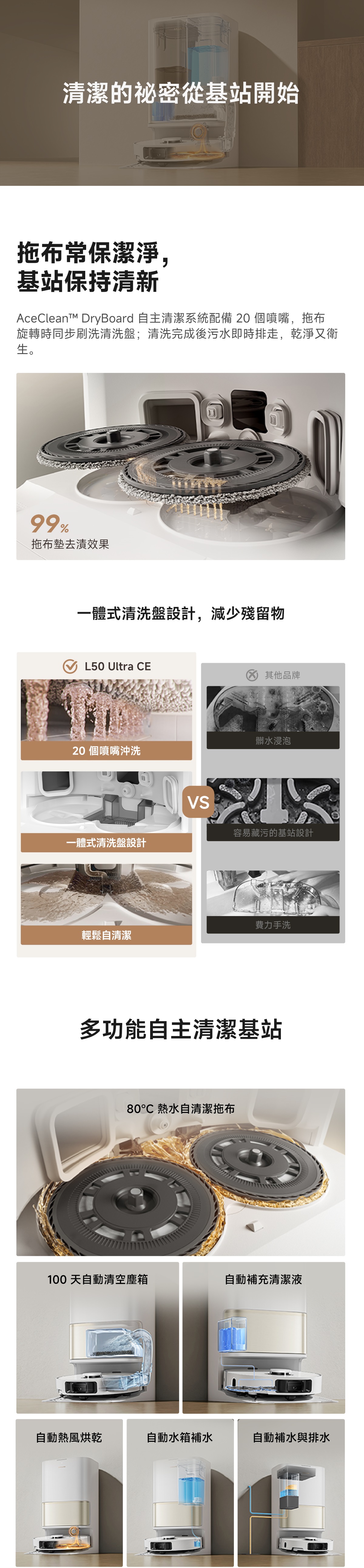 - 多功能自主清潔基站、80°C 高溫自清潔