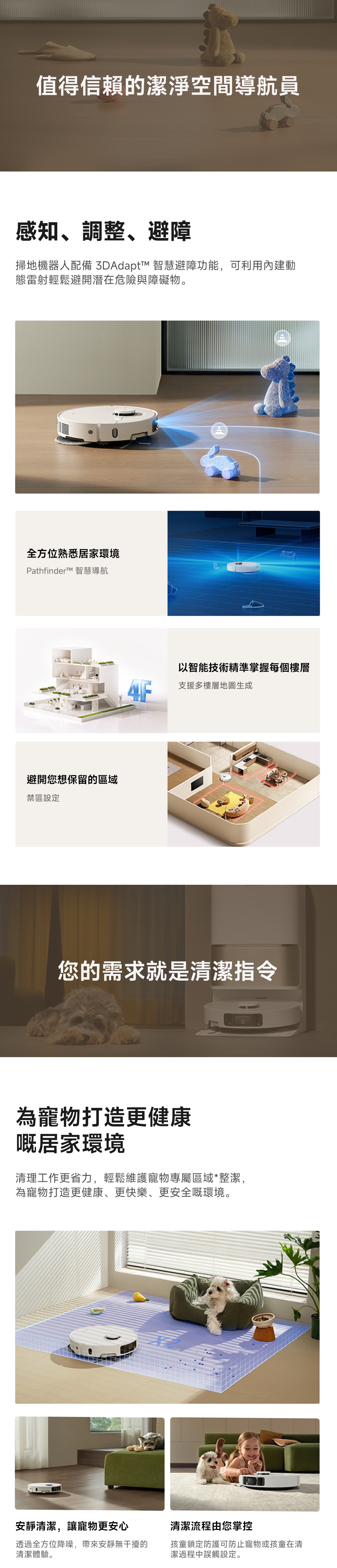 - 3DAdapt™ 智慧避障技術、寵物友好模式
