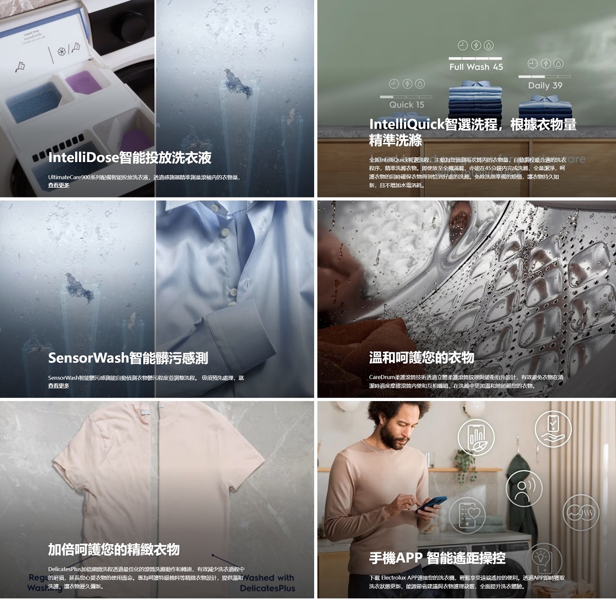 • 智能感測,自動調校最佳洗衣程序,精準洗滌
