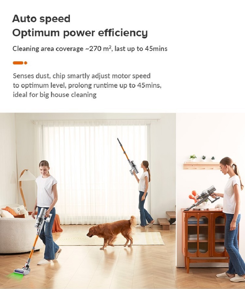 在智慧或節能模式下可達約 45分鐘的續航時間,適合整屋清潔使用。
