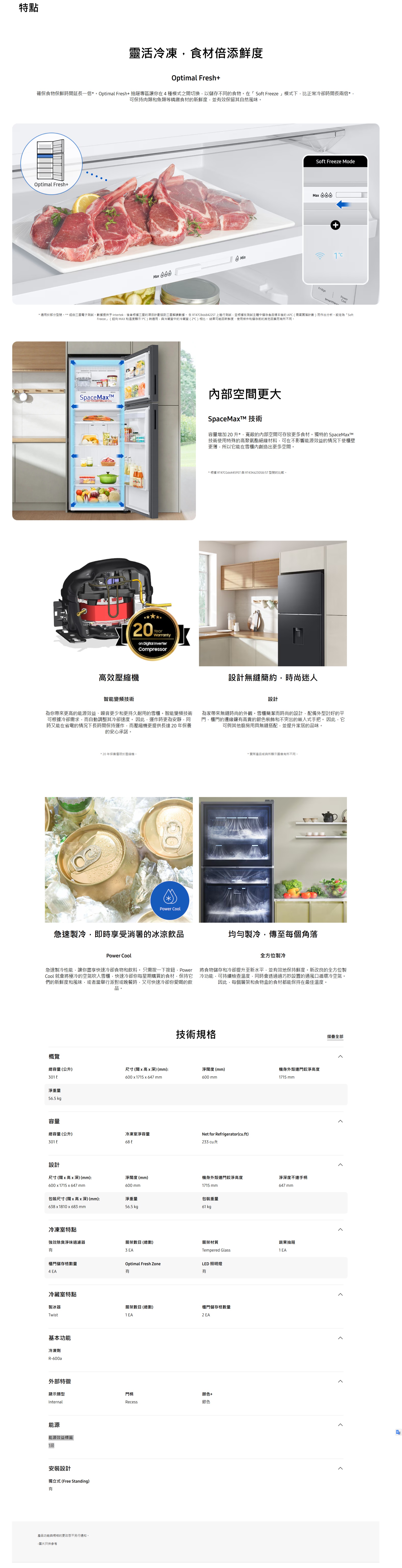 三星 上置式冰箱數碼變頻 SpaceMax™ 雪櫃 301L 銀色 RT31FG542FS9SH