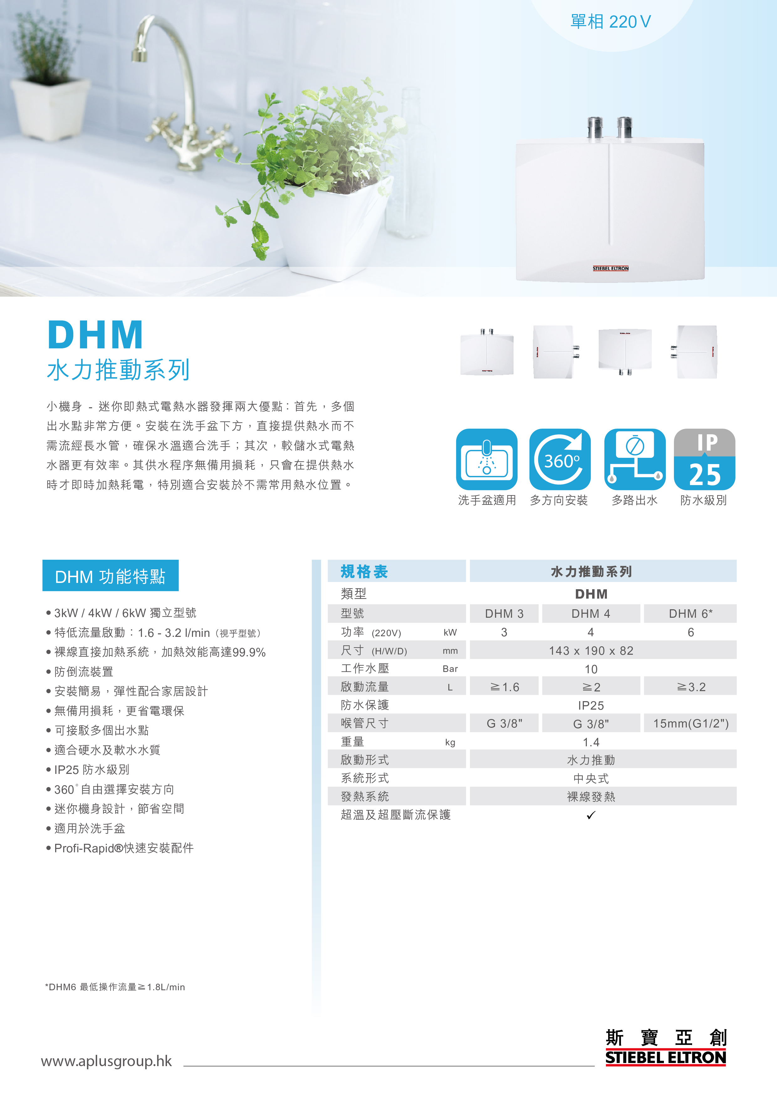 Stiebel Eltron 斯寶亞創 - 1.6公升/分鐘 即熱式電熱水爐 DHM3