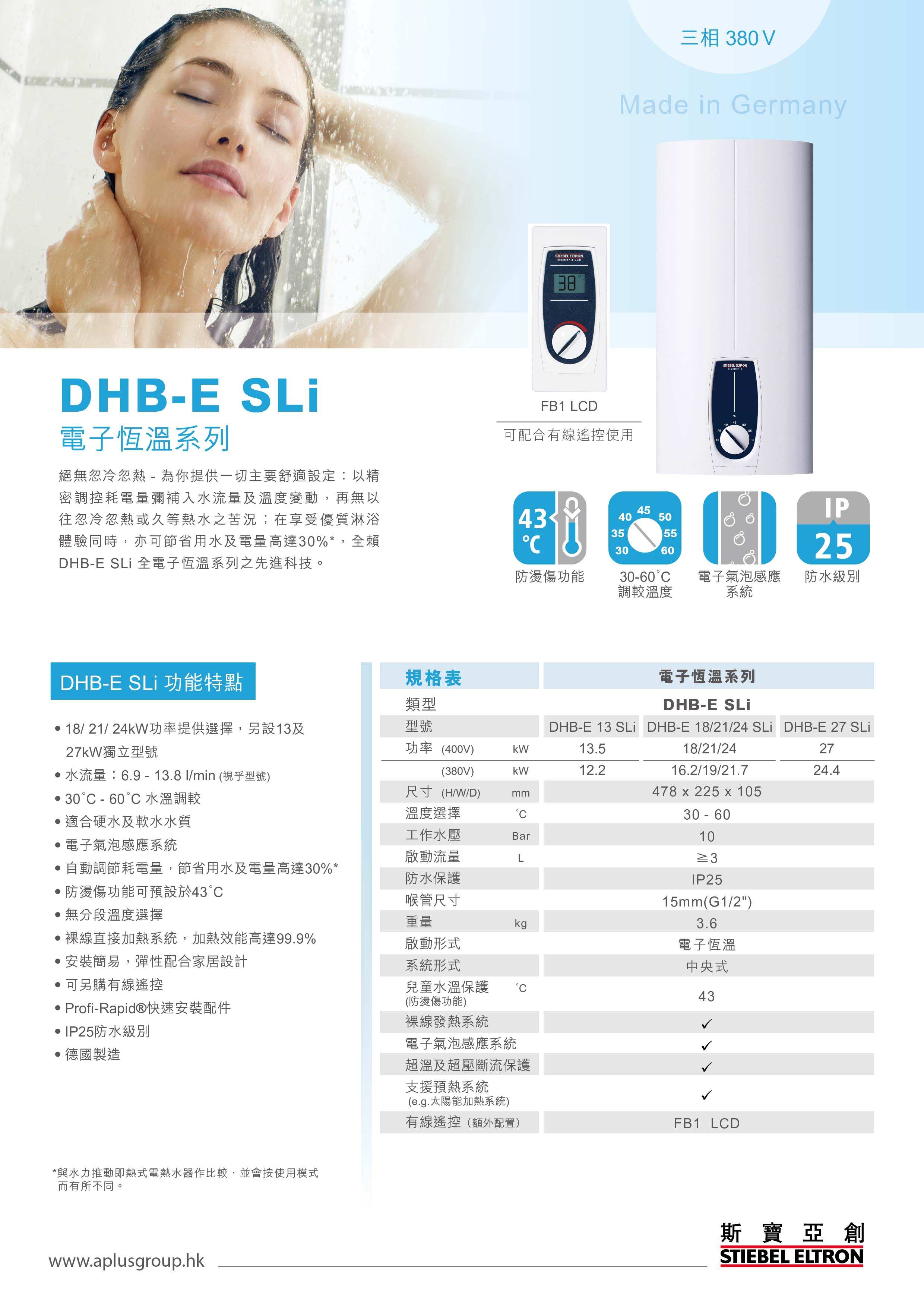 Stiebel Eltron 斯寶亞創 - 27000W 電子恆溫即熱式電熱水爐 DHB-E27SLI