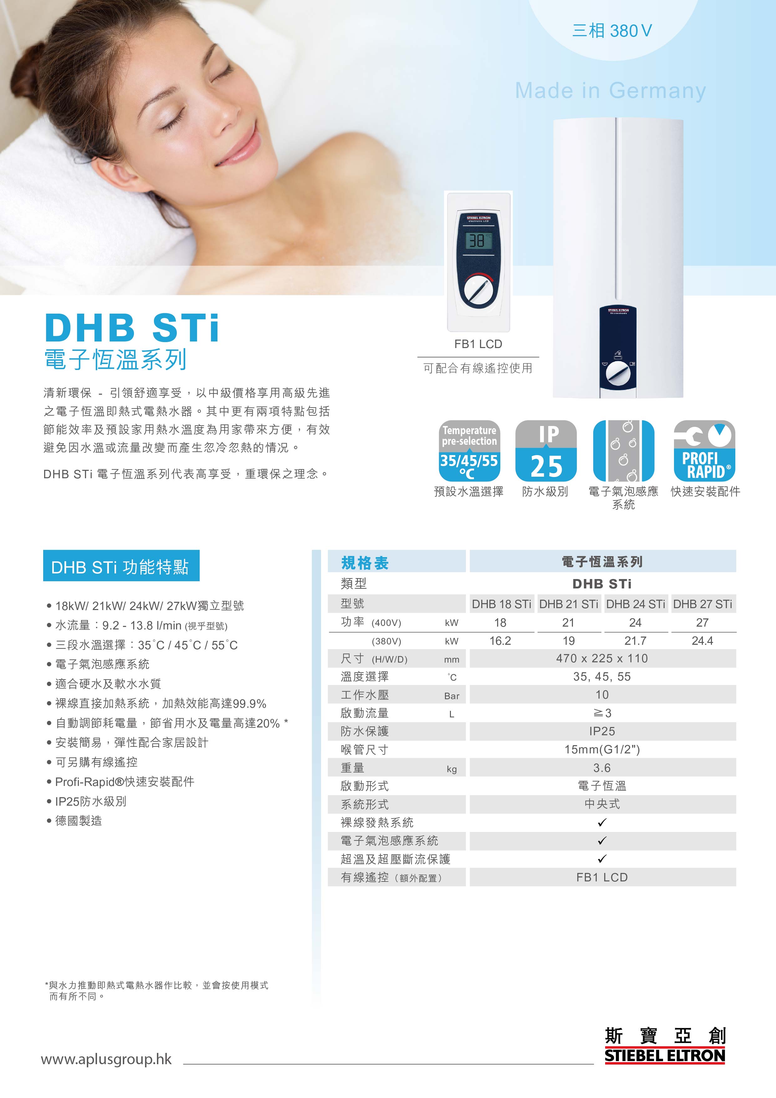 Stiebel Eltron 斯寶亞創 - 即熱式電熱水器 (三相電源) DHB 27 STi