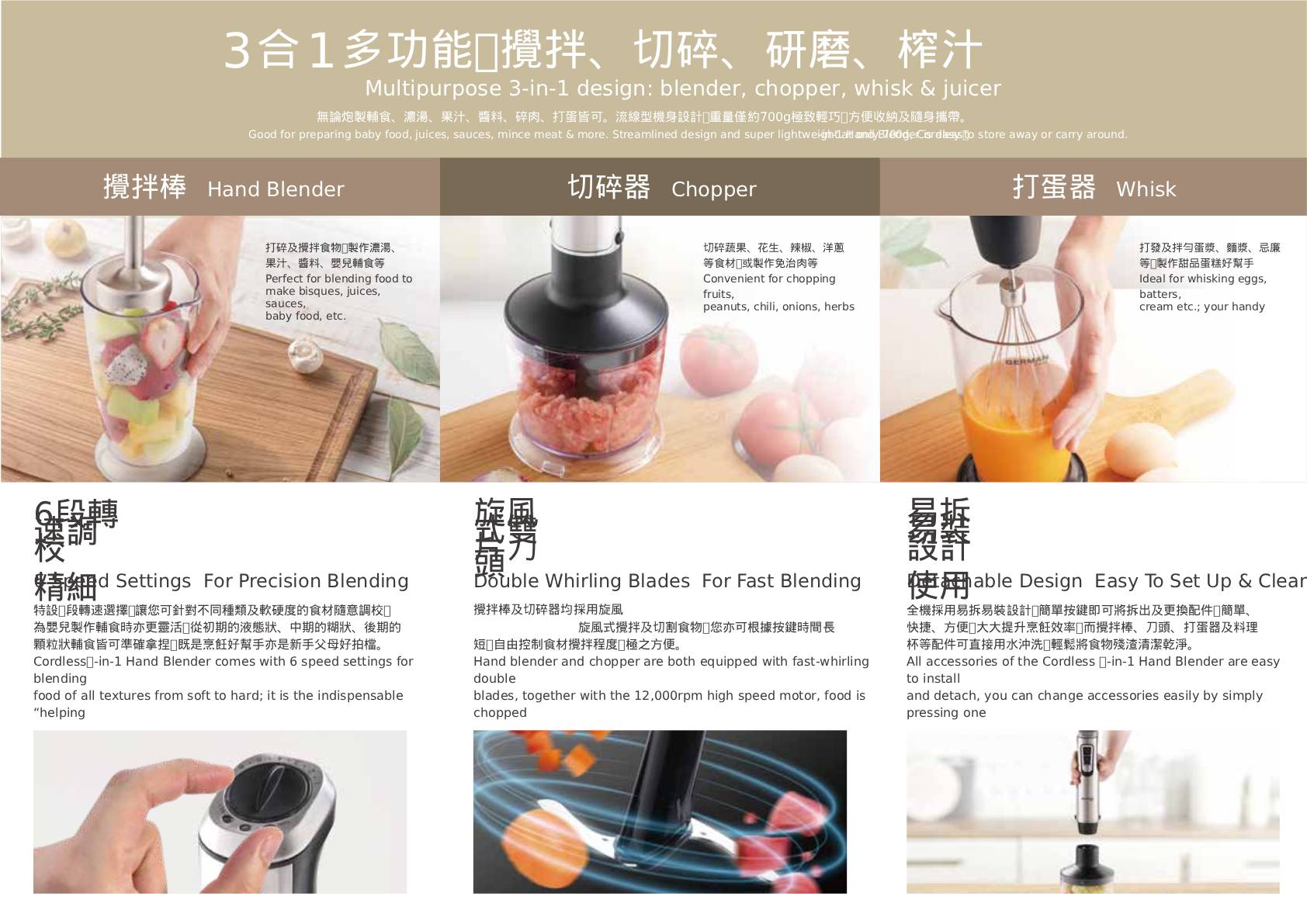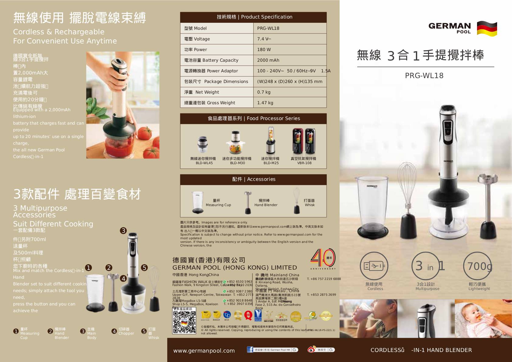 德國寶無線3合1手提攪拌棒 PRG-WL18