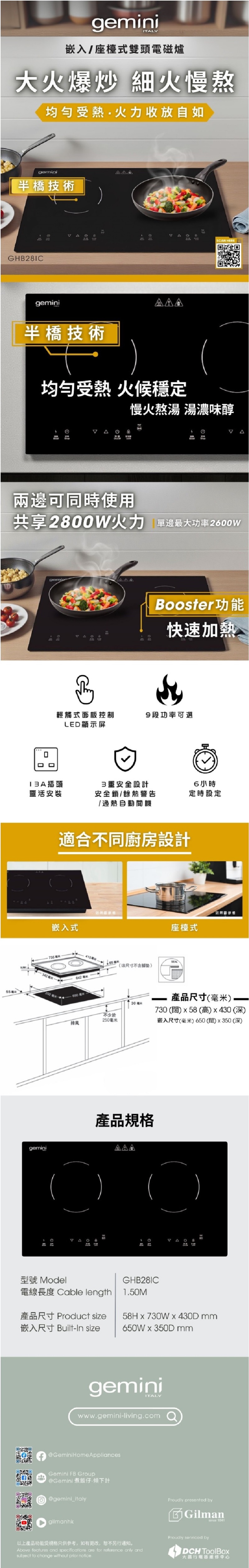 Gemini - GHB28IC 2800W 嵌入/座檯式 雙頭電磁爐