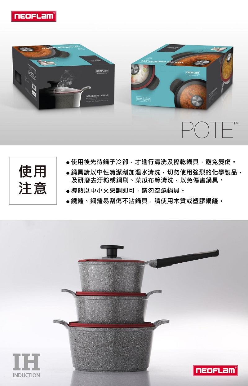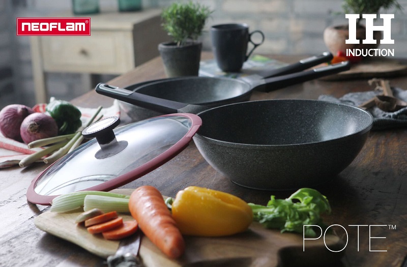 Neoflam - POTE 26cm 樸石鑄造中式炒鑊連玻璃蓋 (適用於電磁爐)
