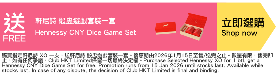 標誌性的軒尼詩 X.O 酒瓶以鮮豔的紅色和金色為主調,並配以紅色瓶頸標籤,上面裝飾著深紅色的馬,象徵著自由與活力,祝願新的一年光明美好。