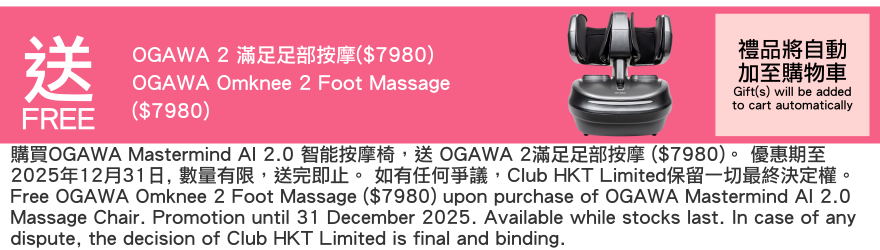 OGAWA - Mastermind AI 2.0 智能按摩椅 OG-7606 (多種顏色)