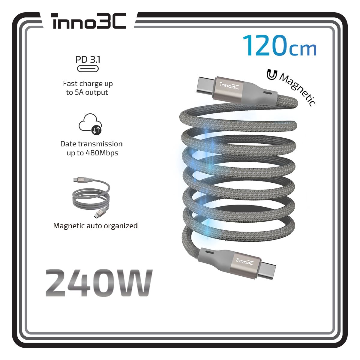 inno3C i-2M240-12 240W Type-C to Type-C 磁吸收納數據傳輸充電線 120cm | Type-C to Type-C 充電 + 數據傳輸線 120cm