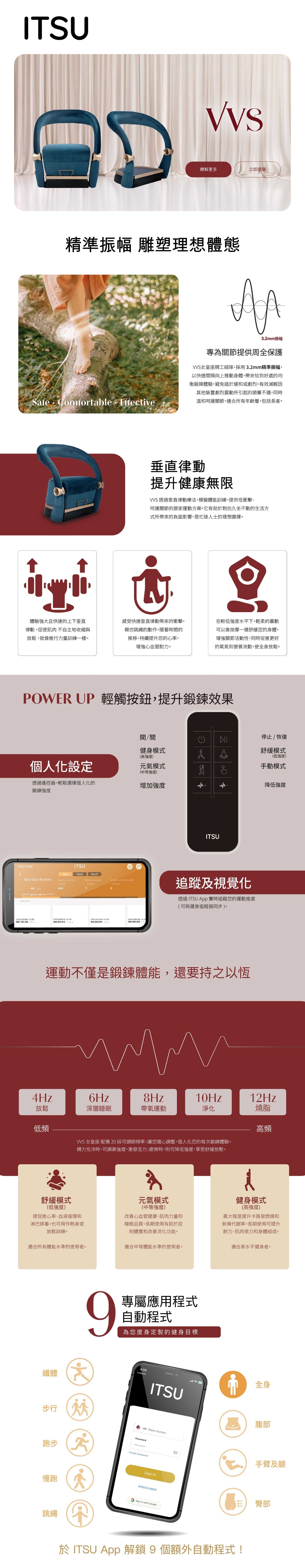 - 採用垂直律動原理,有助強化核心肌肉群組,燃燒脂肪
