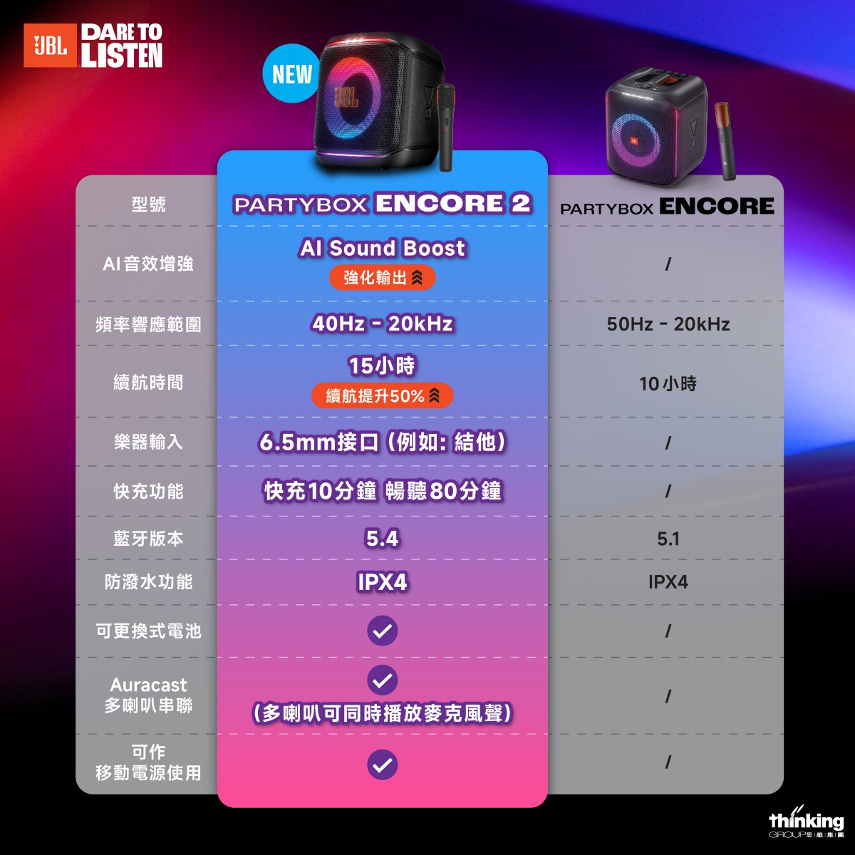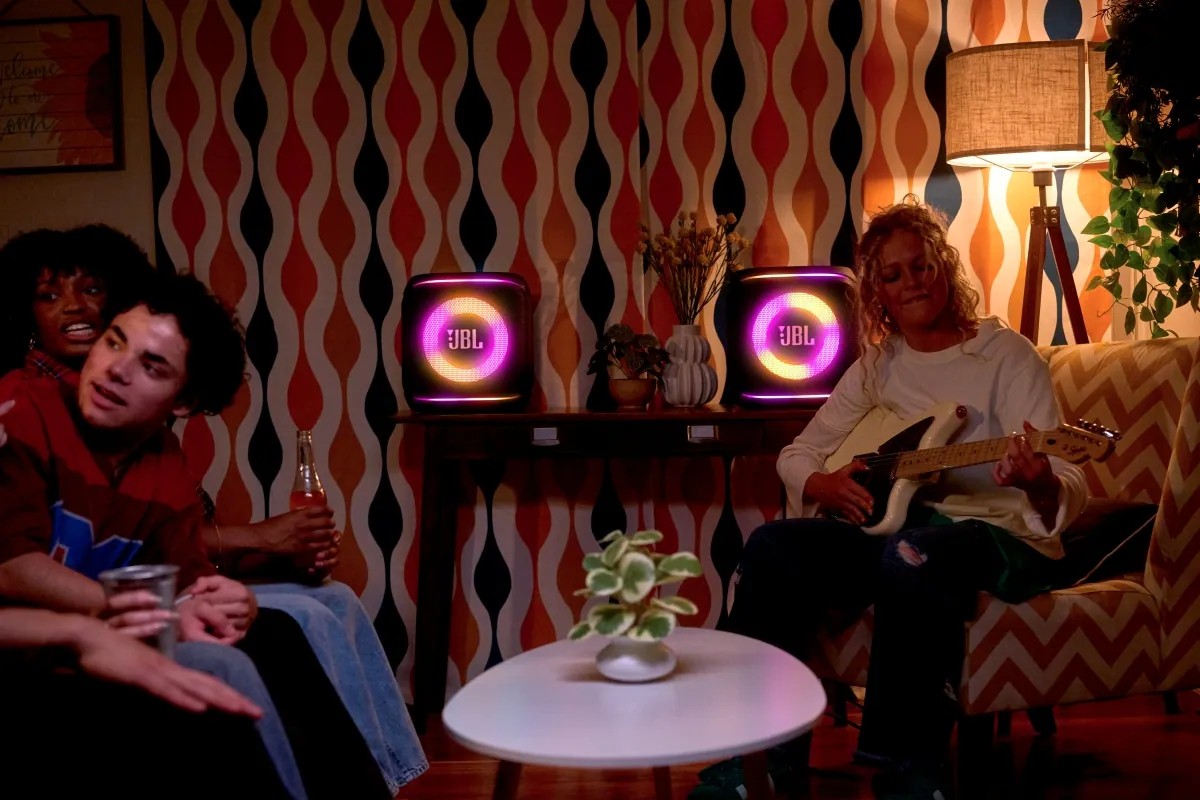 這款便攜式喇叭具備細膩順暢的 JBL Pro Sound、配合氣氛變化的燈光效果,以及專屬麥克風,讓你輕鬆化身派對主角,盡情享受每一場活動。