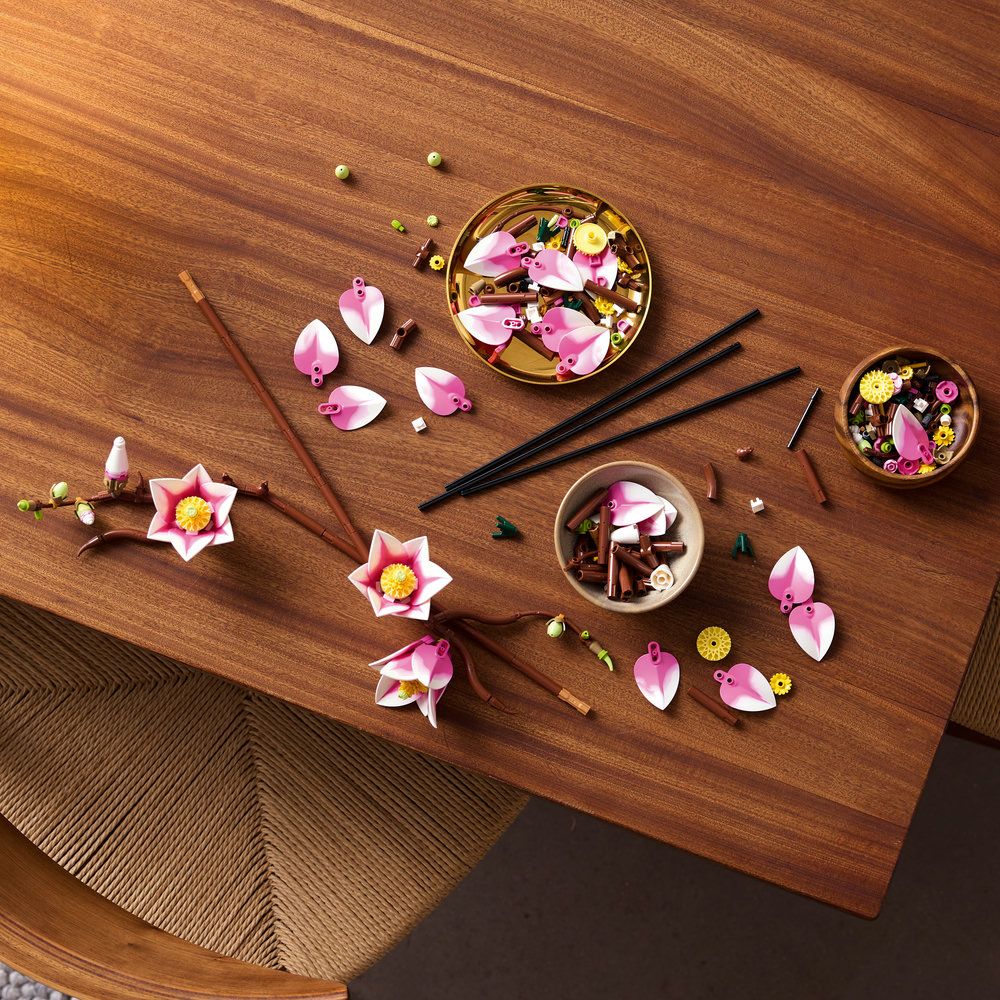 • 花卉拼砌組合-用給大人的樂高® 花藝木蘭枝(11510)拼砌套裝製作花卉擺飾。這是少數納入花卉枝條的樂高花藝系列模型