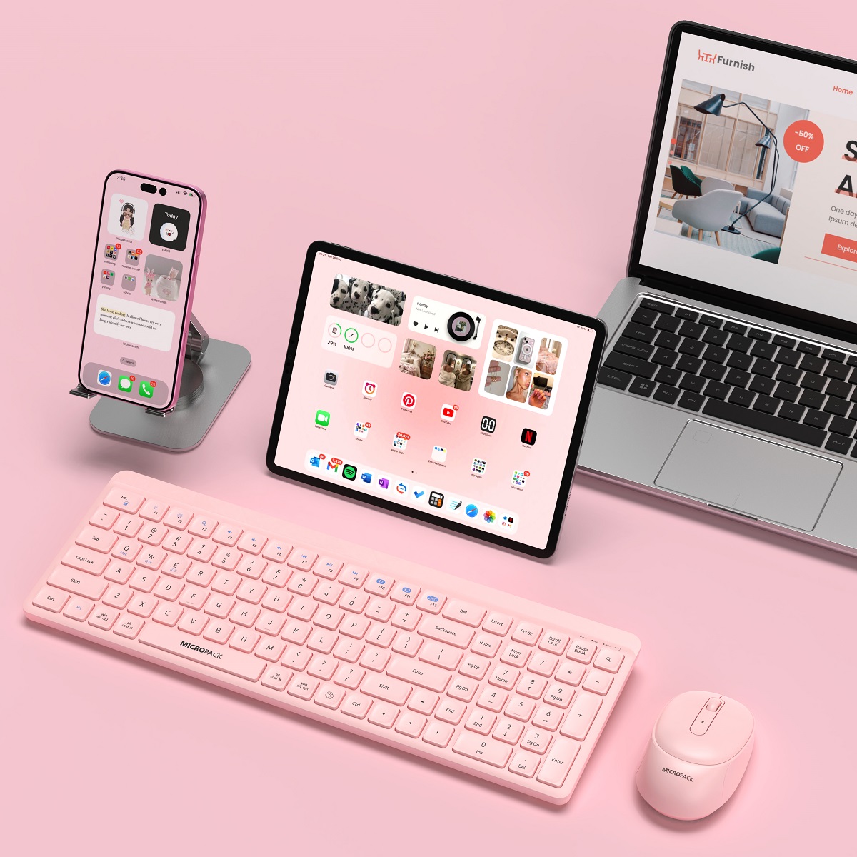 Micropack - 雙模靜音無線鍵鼠組合 2.4G+Bluetooth (多色選擇)