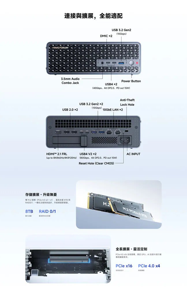 Minisforum MS-S1 MAX AMD Ryzen™ Al Max+ 395 128GB + 2T SSD 3.6L 迷你AI工作站 迷你電腦(CS-MMSS1MD)