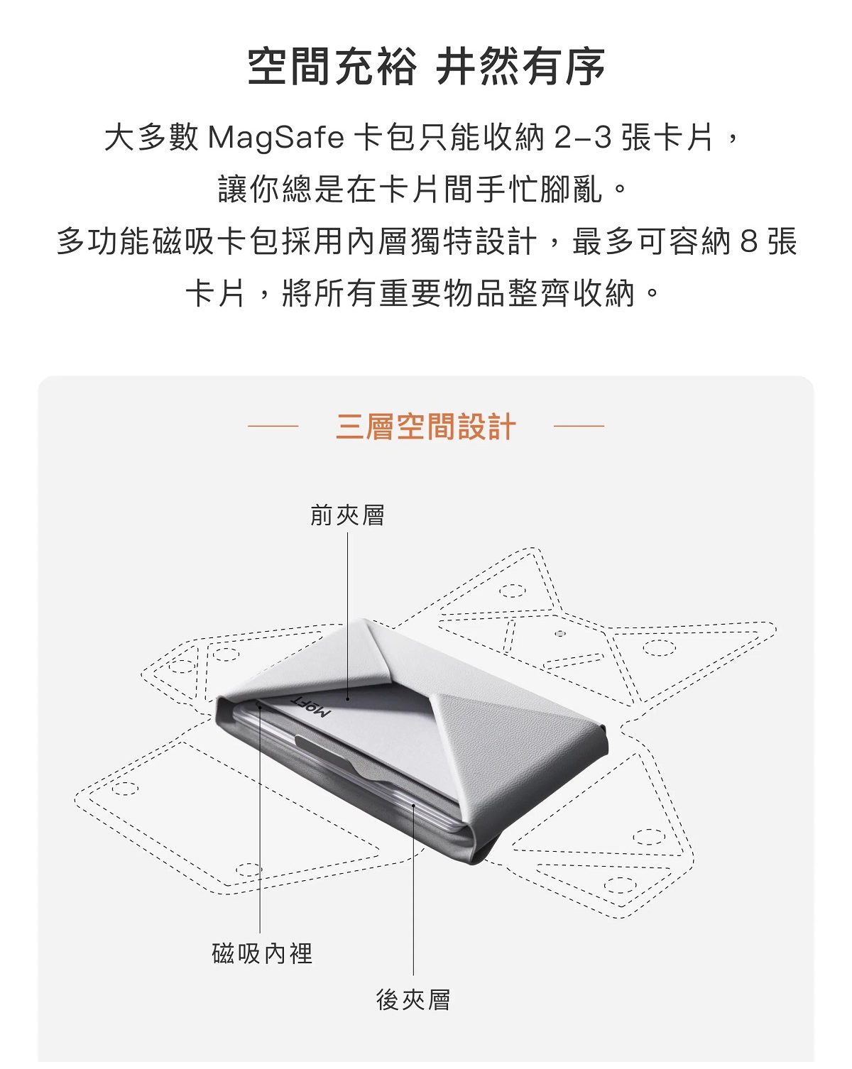 - 採用內層獨特設計,最多可容納 8張卡片