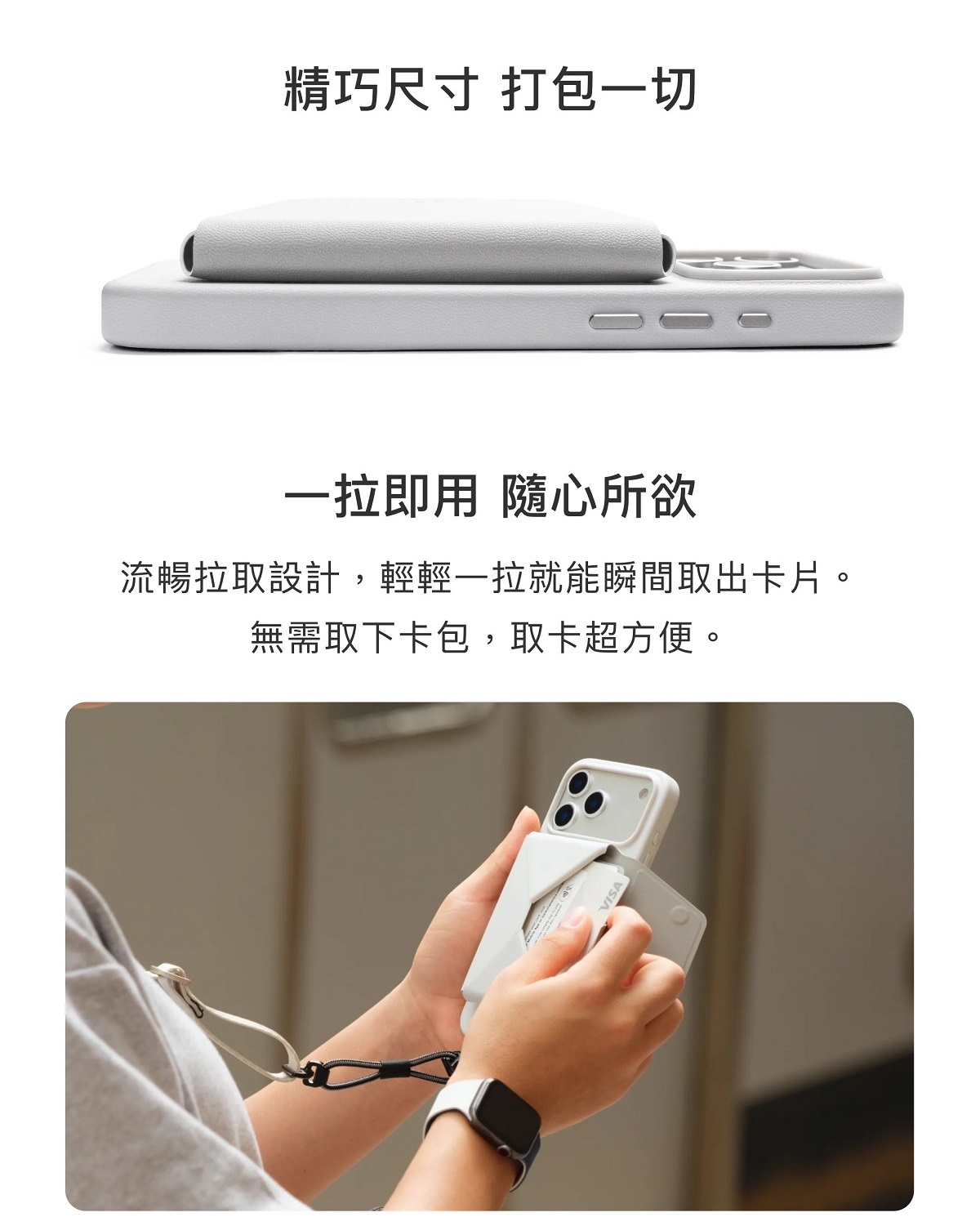 - 磁吸疊式開口設計,為你的卡片提出額外保護