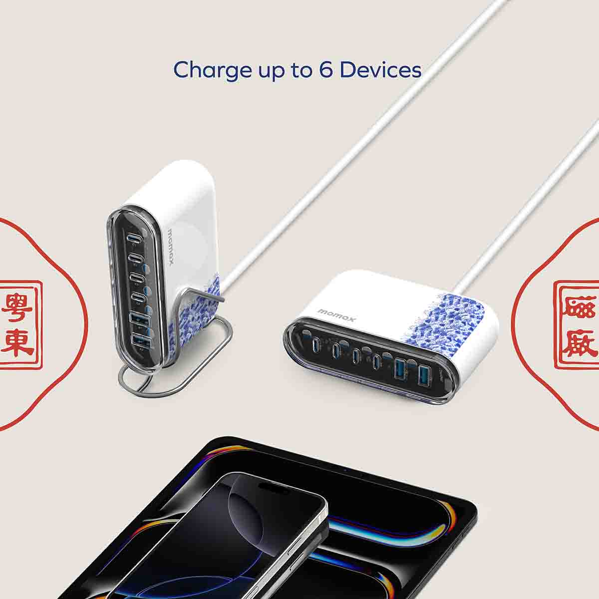 [粵東磁廠系列] Momax 1-Charge Flow+ 120W 六輸 出桌面 GaN 充電座 - UM55UKYTW