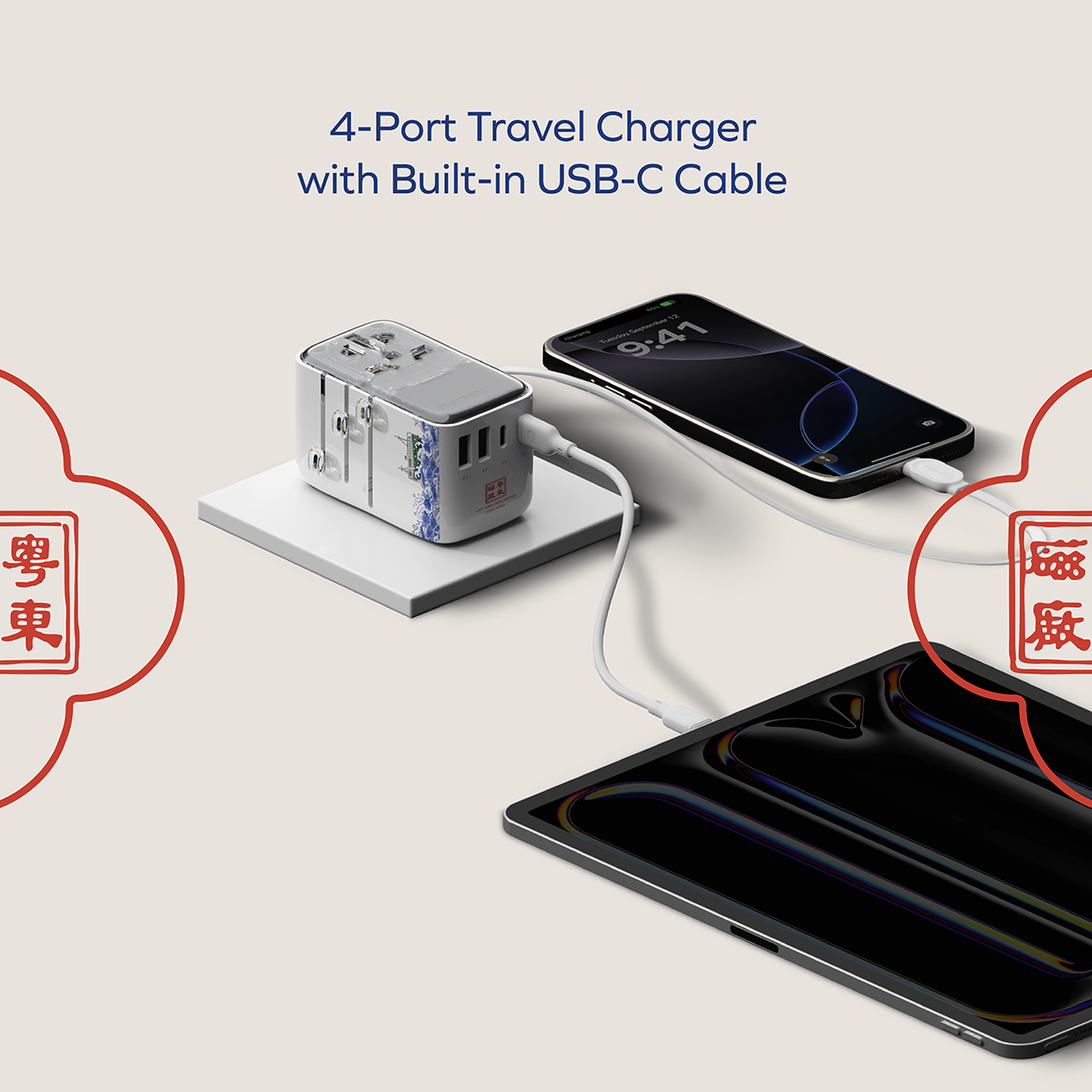 - 採用伸縮USB-C充電線及 2 個USB-C + 2 個USB-A 的設計