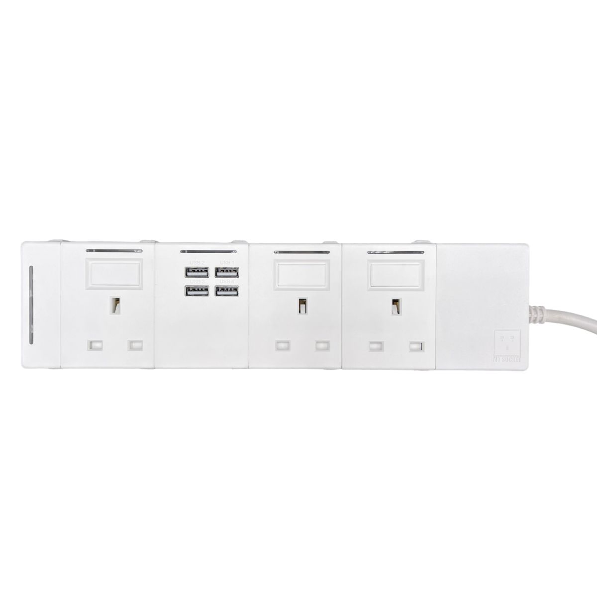- 此組合為3+1組合,包括開關組合 x 1,13A 英式插座 x 3,4個USBA插頭組合 x 1。