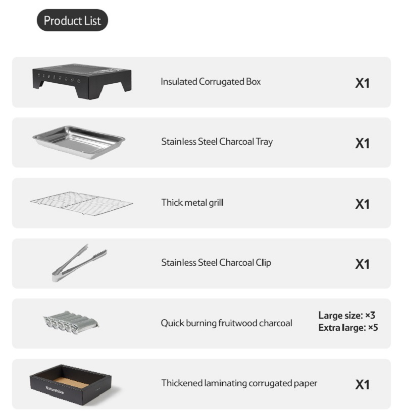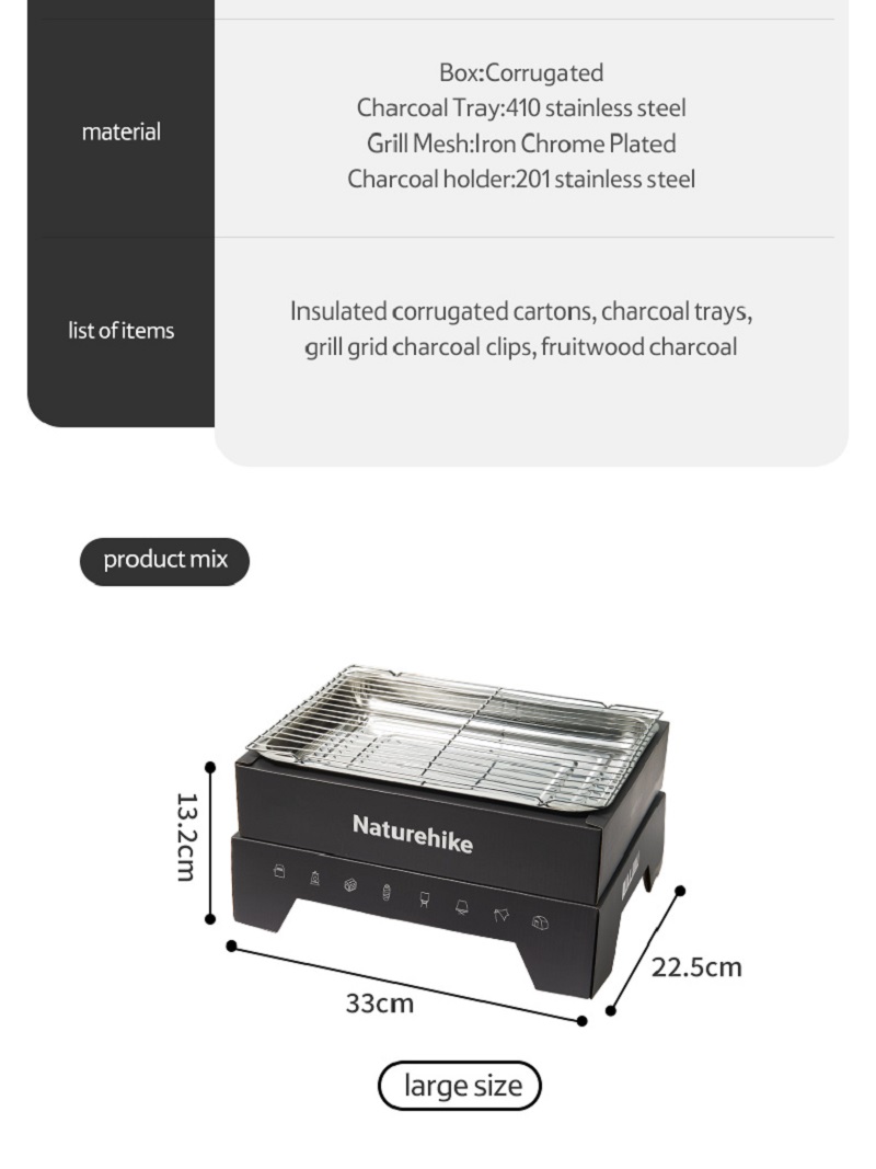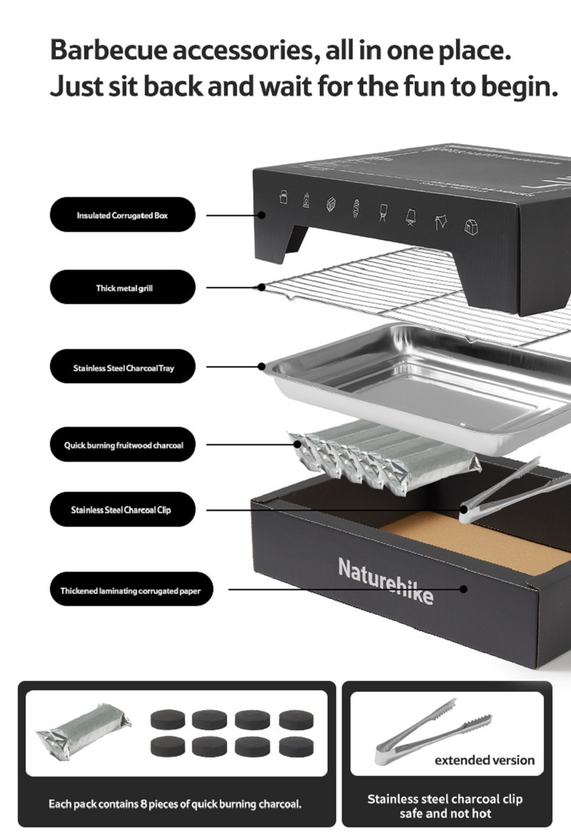 Naturehike - 一次性烤架連木炭40粒 (灰色/黑色)