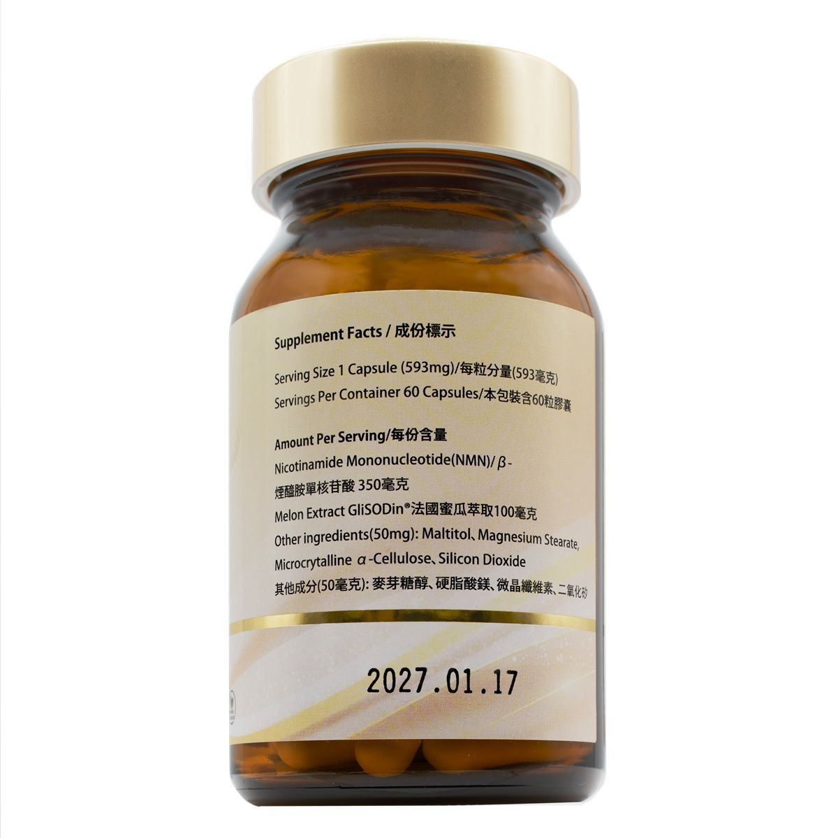 利用尖端腸溶植物膠囊技術,使成份不被胃酸破壞及溶解,直到腸道中才釋放,令雙皇牌至強成份更易吸收、成效更佳。結合100%純度的NMN,可以確保長期食用也沒有任何不良或不知名的雜質影響身體,禦齡效果倍增。