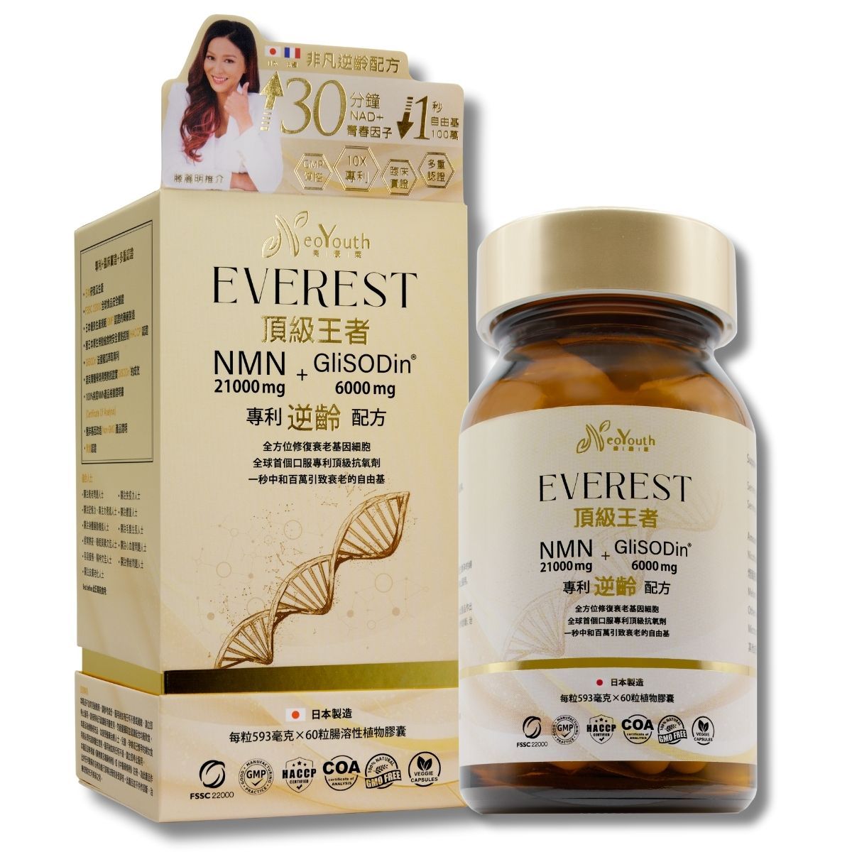 日本NeoYouth美康萊 - Everest 頂級王者 NMN 21,000mg + GliSODin®️ 6,000mg 60粒/盒 1件裝