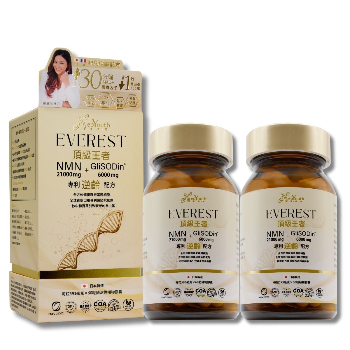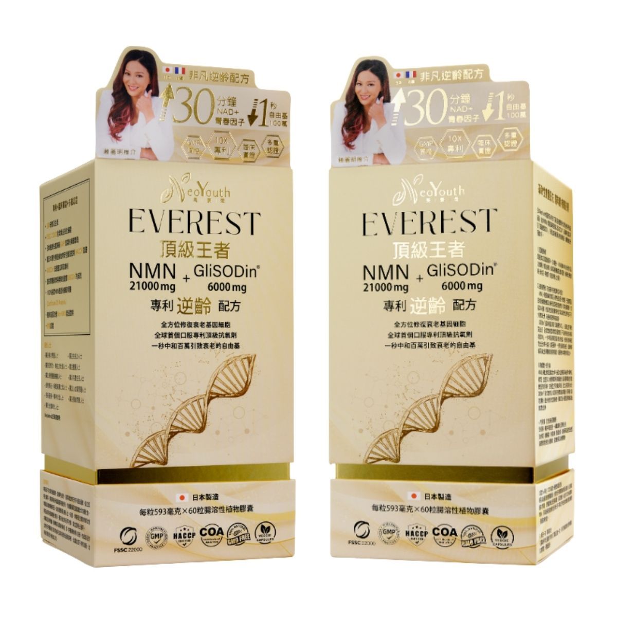 日本NeoYouth美康萊 - Everest 頂級王者 NMN 21,000mg + GliSODin®️ 6,000mg 60粒/盒 2件裝