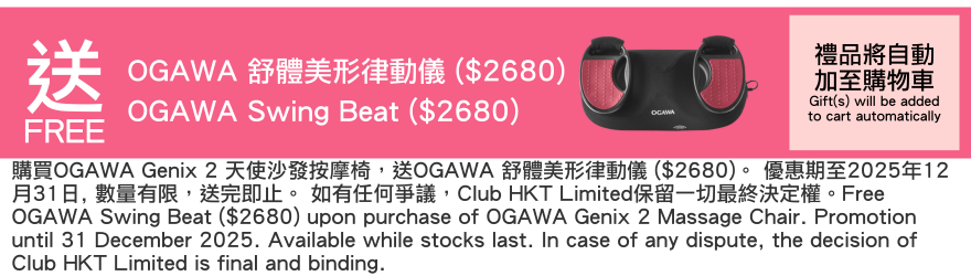 OGAWA - Genix 2 天使沙發按摩椅 OG-3159X (兩種顏色)