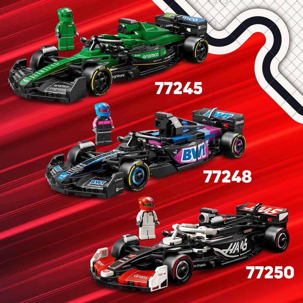 - 適合全家人的 F1® 樂趣-搭配其他 LEGO® F1 主題拼砌盒組(另售),跟全家人一起比賽,飛馳衝向方格旗