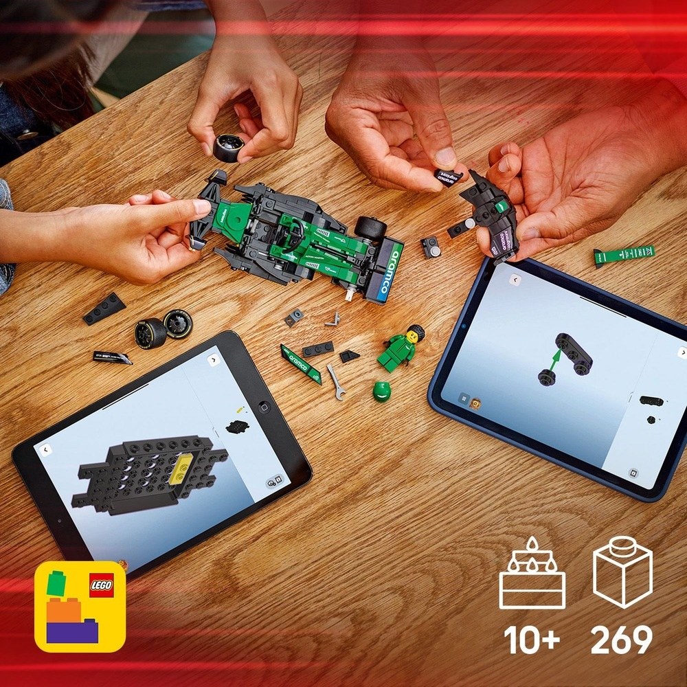 - 適合孩子的 Aston Martin Aramco F1® 玩具汽車-樂高® 極速賽車 Aston Martin Aramco F1 AMR24 賽車盒組適合 10 歲以上男孩與女孩,讓他們拼砌、展示和比賽