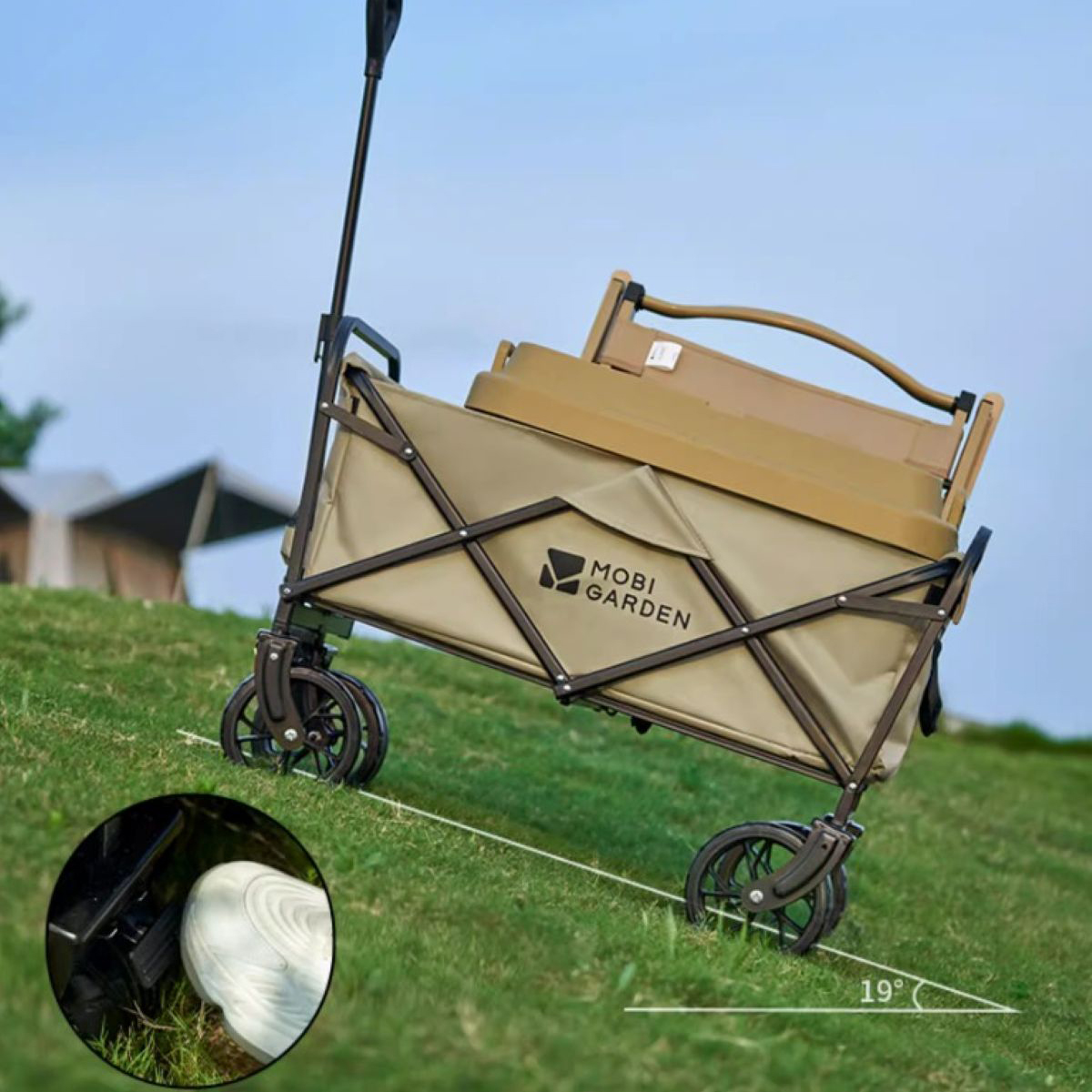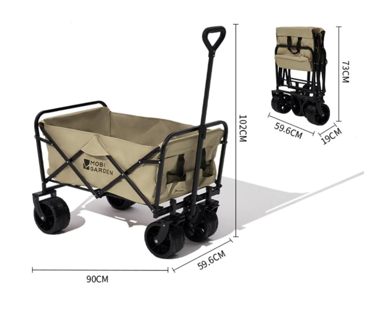 MOBI GARDEN - 戶外可折疊露營車野營推車大狗巨型犬可折疊手拉車 (升級寬輪款|120kg承重)(細沙黃色/米白色)