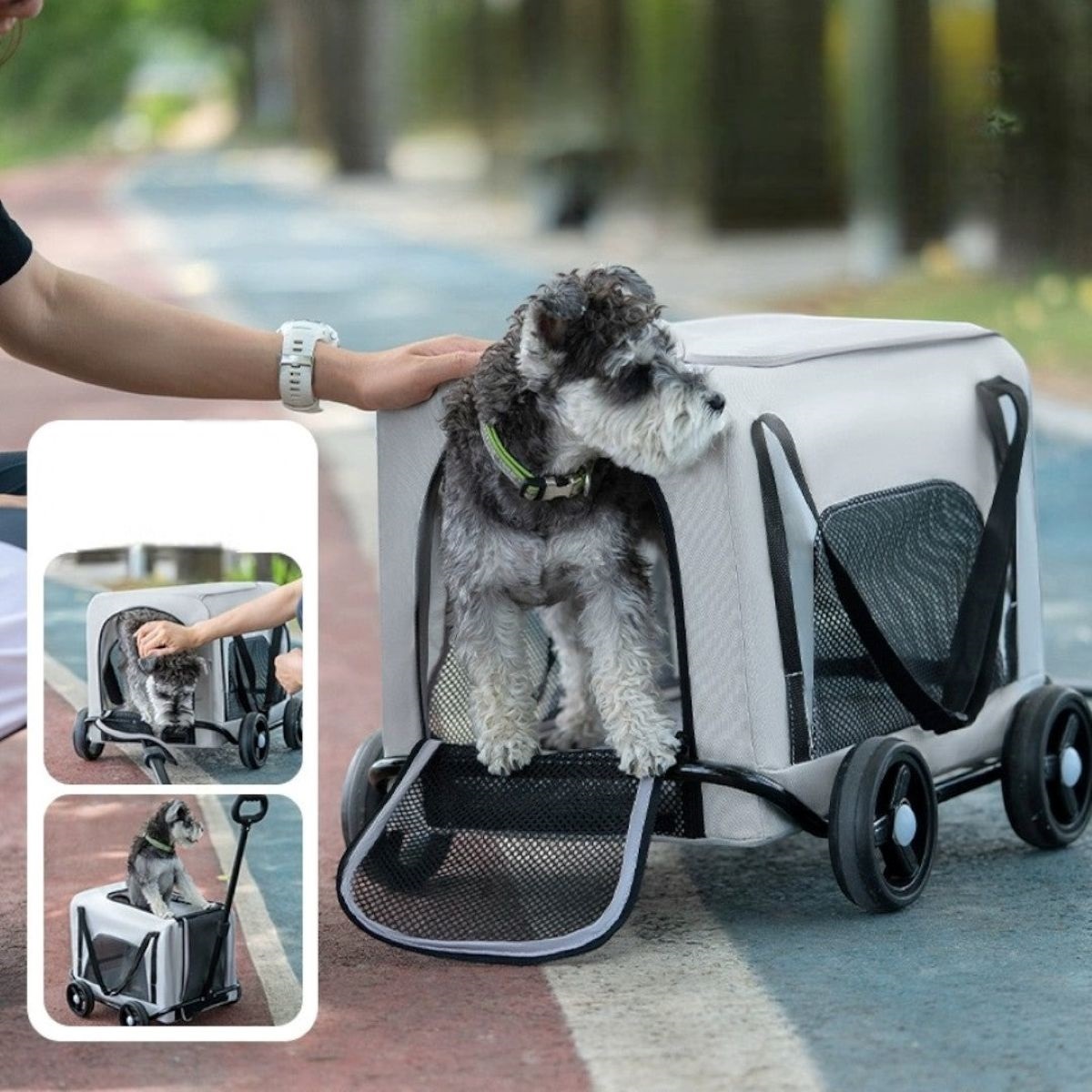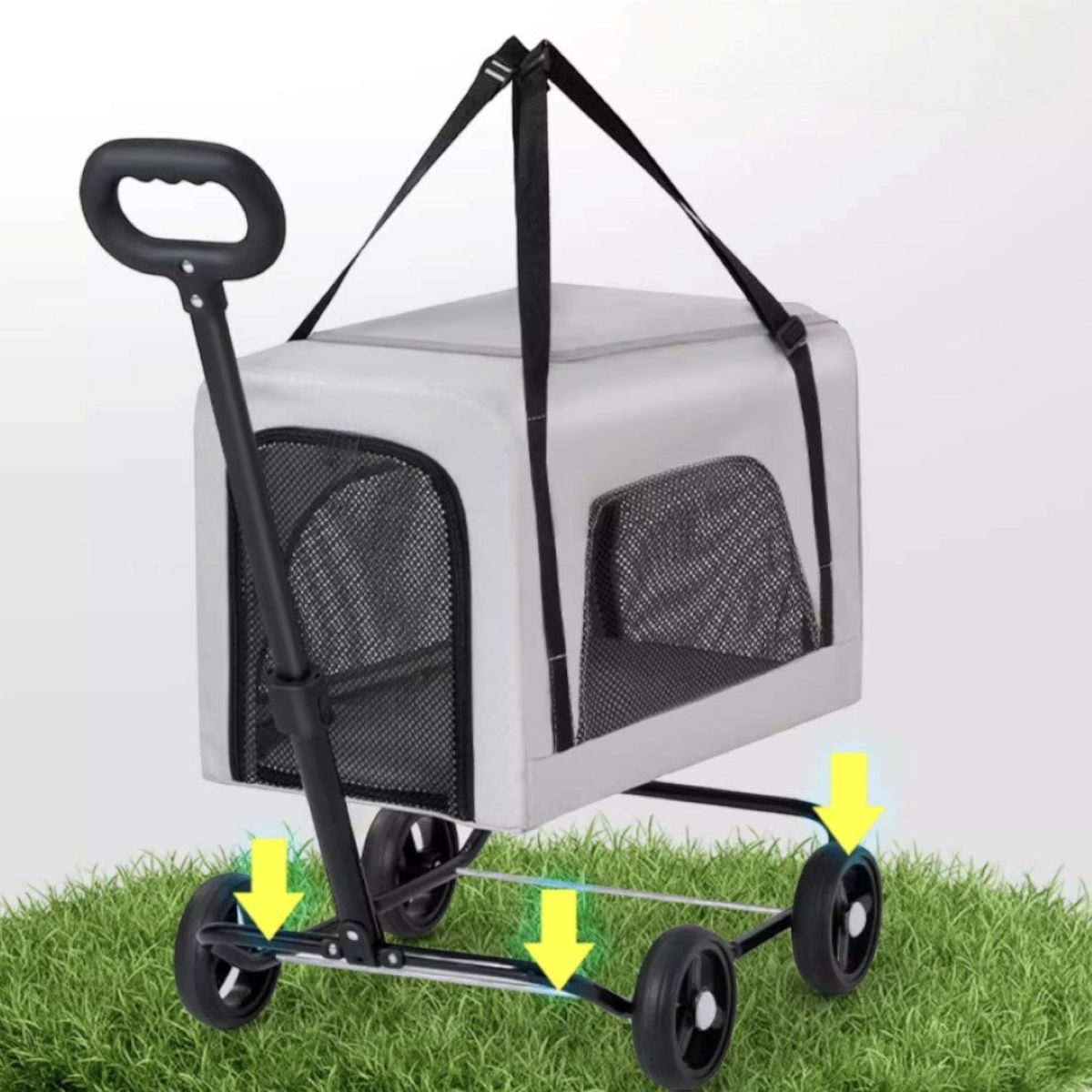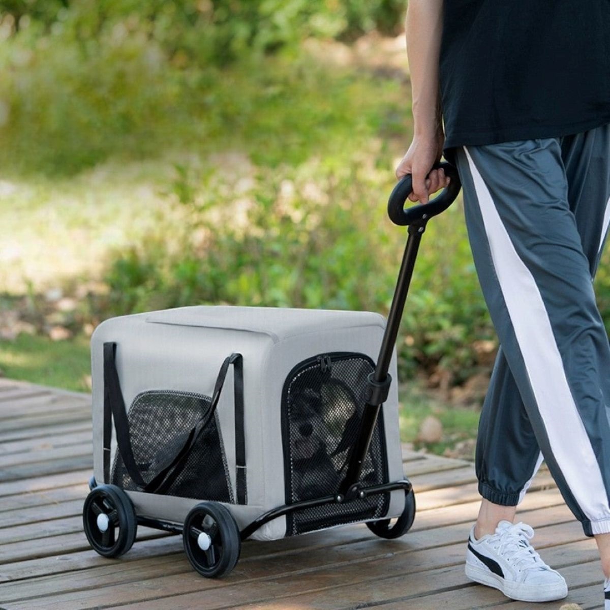 拉桿推行、頂天窗透氣,炎夏雨天皆可帶寵外出散步、購物無憂。