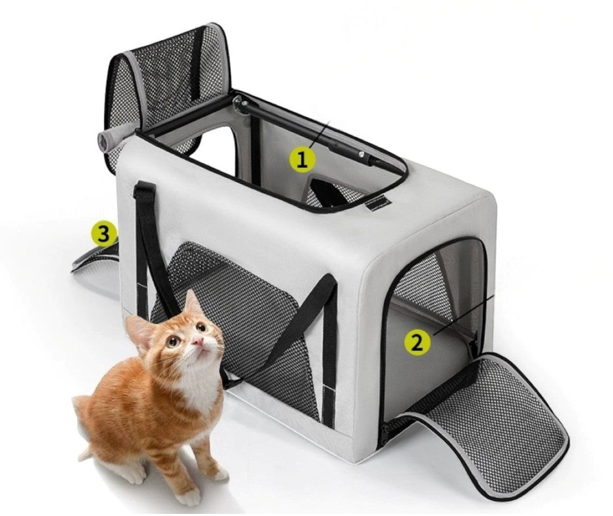 前開窗、後開門、頂天窗 三面開合式拉鍊艙門,空氣對流快、視野更寬闊,寵物呼吸更自由。