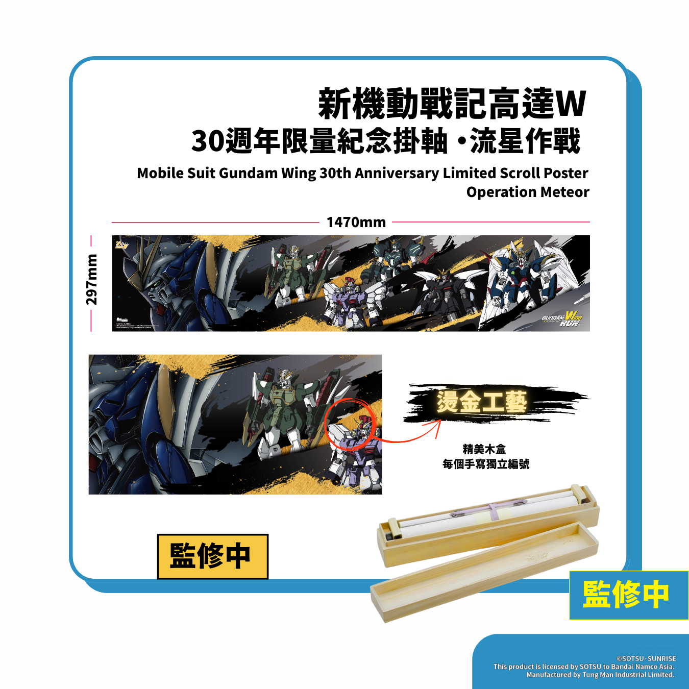 為慶祝 GUNDAM WING 30週年,官方特別授權推出今次限定卷軸。佢唔單止係一幅掛畫,而係一份承載住 高達 WING 經典回憶 同 粉絲熱情 嘅紀念品。無論係擺放喺家中、辦公室定係收藏室,都能夠成為空間中最矚目嘅存在。