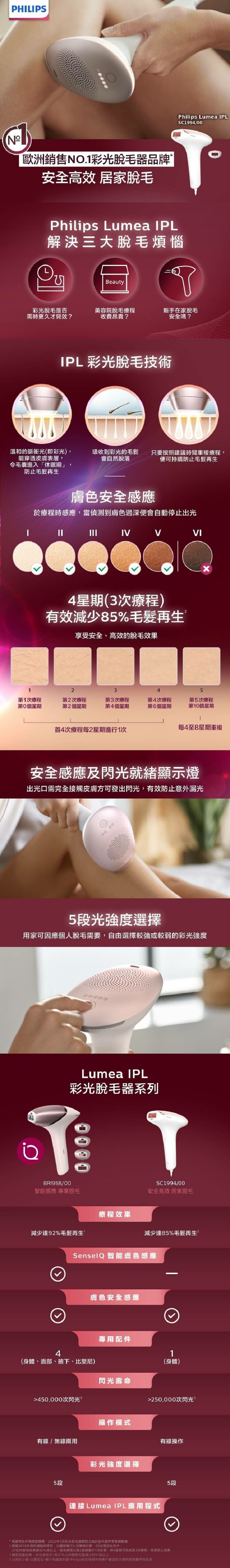 **以用於小腿、比堅尼位、腋下和面部計算。Philips的全球兩年保養不會因彩光燈的使用壽命而延長